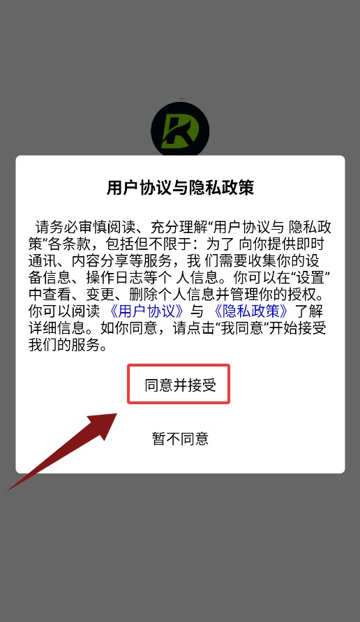 1、應(yīng)用啟動時將顯示使用協(xié)議,需點擊同意后正式進入主界面。